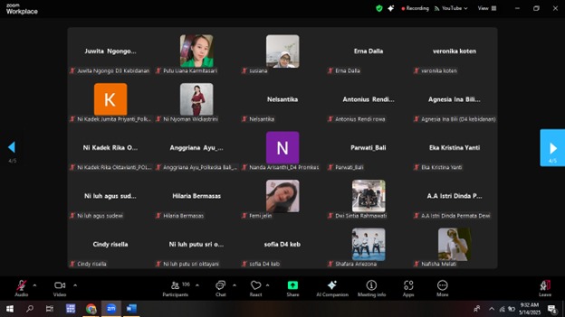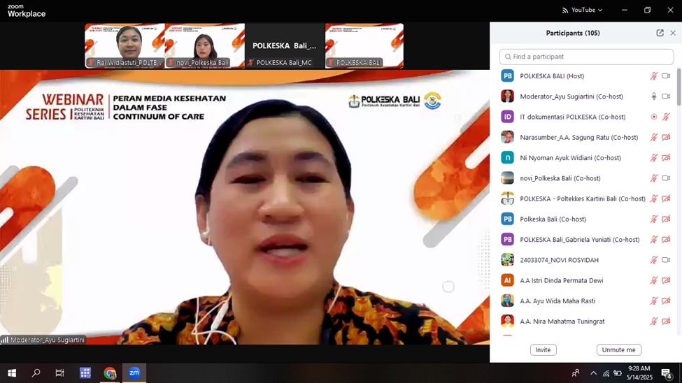 Pada hari Rabu, 14 Mei 2025 telah terselenggara kegiatan “Webinar Series I” yang dilakukan melalui platform ZOOM Meeting Politeknik Kesehatan Kartini Bali. Webinar kali ini mengusung Tema “Peran Media Kesehatan dalam Fase Continuum of Care”. Media kesehatan berperan penting dalam fase continuum of care dengan memberikan informasi, edukasi, dan memfasilitasi komunikasi antara penyedia layanan kesehatan dan pasien.